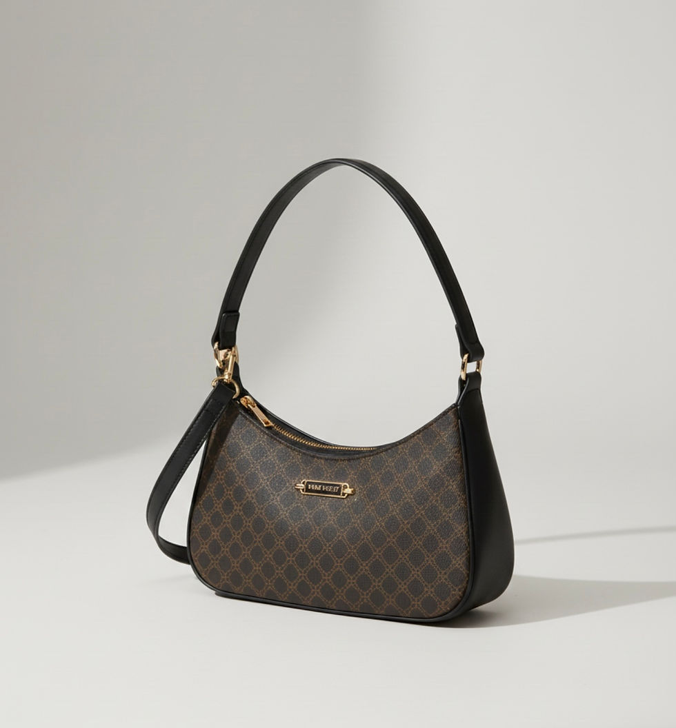 Nine West Monogram Baguette Shoulder Bag/ Black & Brown logo print purse (small)